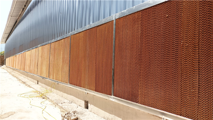 水簾風機系統(tǒng)降溫是目前養(yǎng)豬場、養(yǎng)雞場等養(yǎng)殖場較為常用的降溫措施,尤其是規(guī)模養(yǎng)殖場使用更為普遍。水簾風機系統(tǒng)是在養(yǎng)殖場、棚舍一端安裝水簾,另一端安裝通風風機,通風機工作時,養(yǎng)殖場、棚舍內(nèi)部會形成一定負壓,外部的空氣通過一端的水簾進入養(yǎng)殖場、棚舍,達到降溫的目的。水簾風機系統(tǒng)降溫效果良好,在高溫季節(jié)養(yǎng)殖場、棚舍溫度也能維持在30 ℃以下。那么如何對養(yǎng)殖場降溫除味,要解決養(yǎng)殖廠的問題,最佳的方法就是通風、換氣、降溫為一體的環(huán)??照{(diào)和水簾風機。