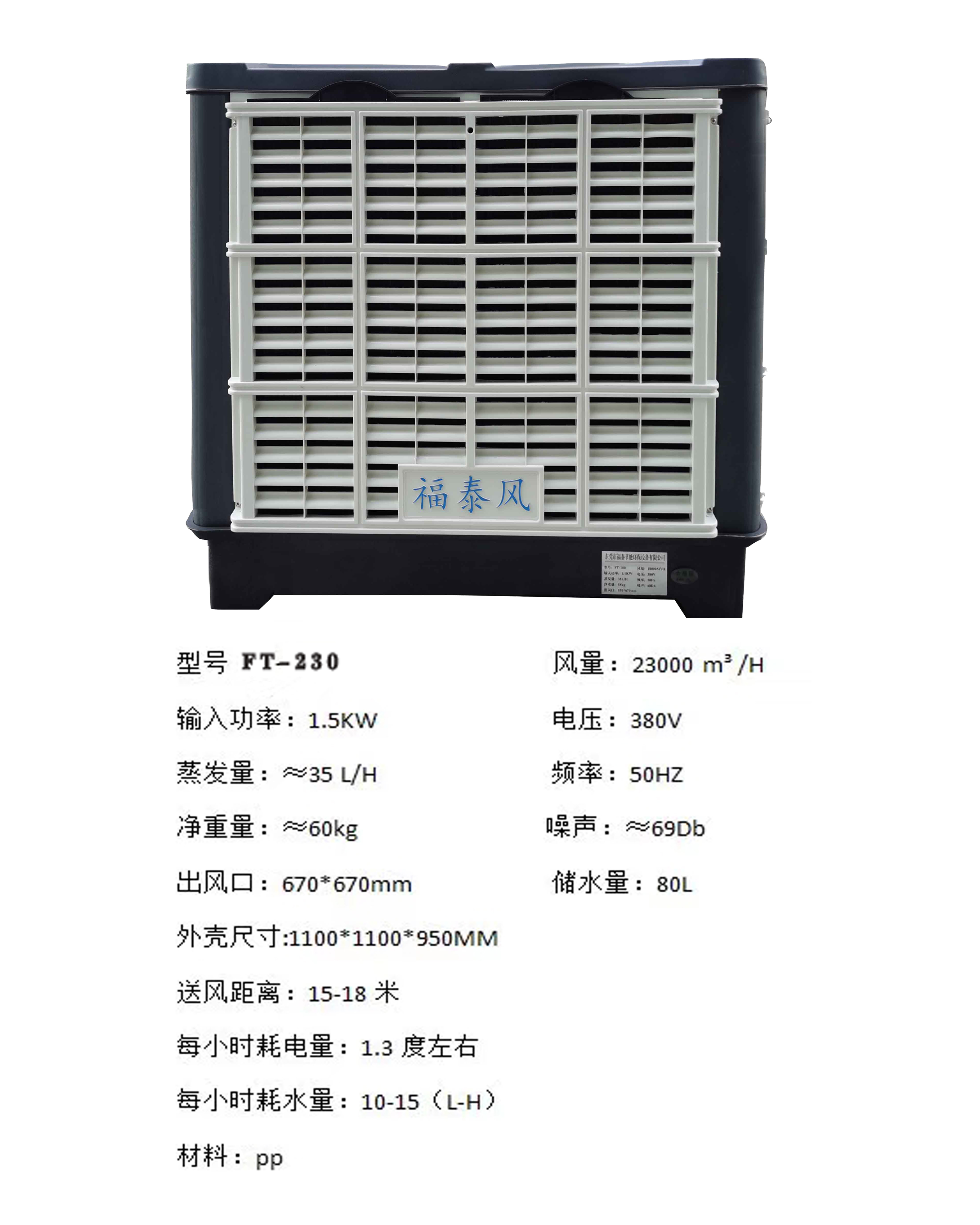 福泰環(huán)??照{(diào)性能穩(wěn)定在越炎熱的天氣下降溫的效果越好。適用于開敞式及半開敞式環(huán)境,能夠直接輸送自然風(fēng)及輸送降溫后的涼風(fēng)。室外新鮮空氣經(jīng)福泰蒸發(fā)式冷氣機(jī)過濾、降溫后向室內(nèi)源源不斷的大量輸送,將室內(nèi)帶有異味、粉塵和混濁悶熱的空氣排出室外,同時(shí)兼顧換氣降溫及增加空氣含氧量等多種效果。